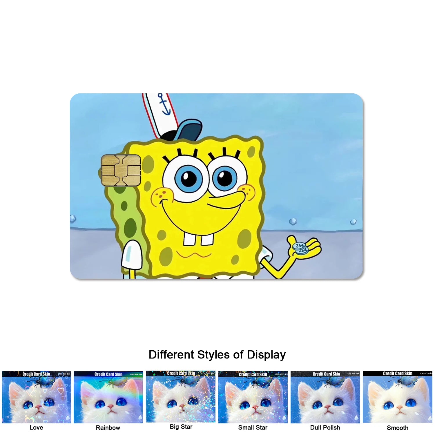 Give your cards a playful makeover with this SpongeBob PVC sticker skin — the perfect accessory for kids and fans!