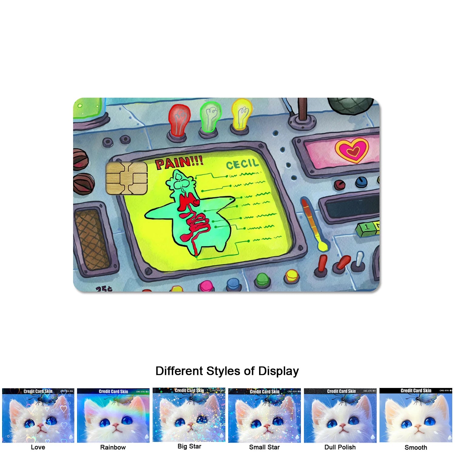 High-quality PVC material, designed to protect and decorate credit/debit cards without affecting functionality.